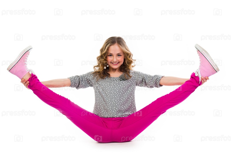 Красивая девочка выполняет акробатические упражнения