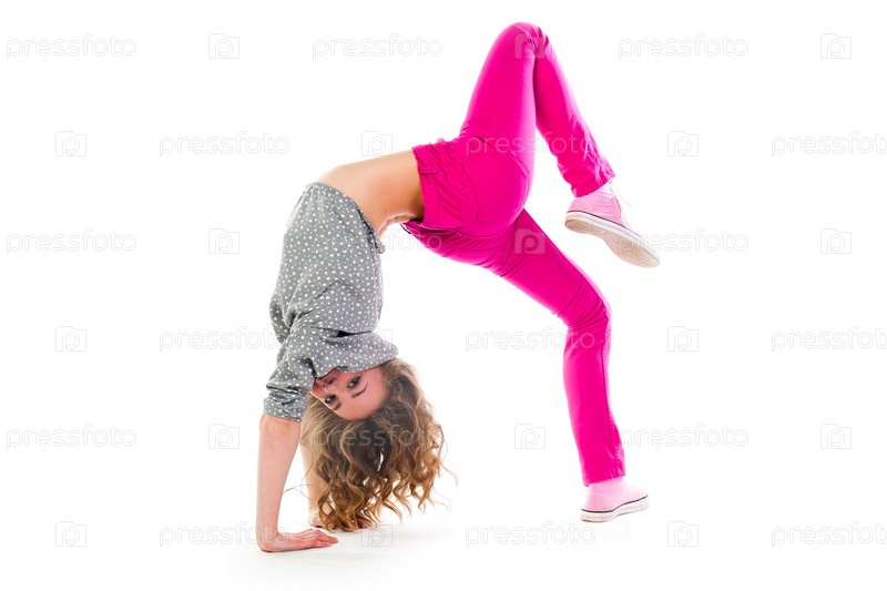 Красивая девочка выполняет акробатические упражнения