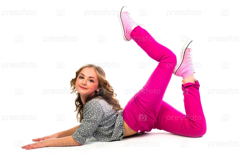 Красивая девочка выполняет акробатические упражнения