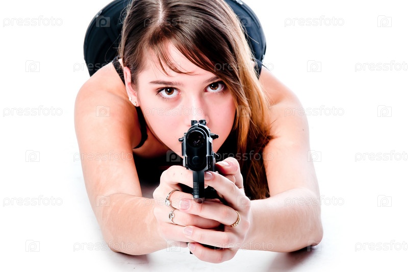 Молодая красивая женщина с пистолетом