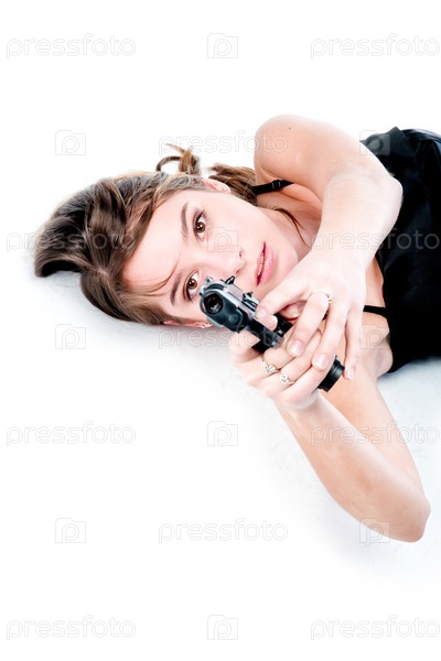 Молодая красивая женщина с пистолетом