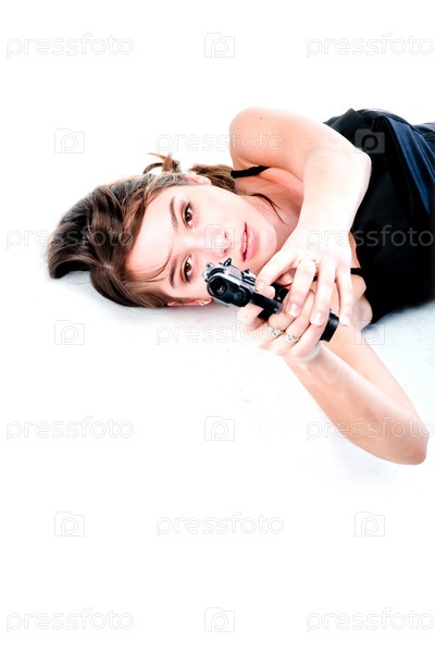 Молодая красивая женщина с пистолетом