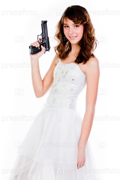 Молодая красивая женщина с пистолетом
