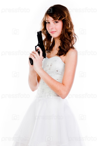 Молодая красивая женщина с пистолетом