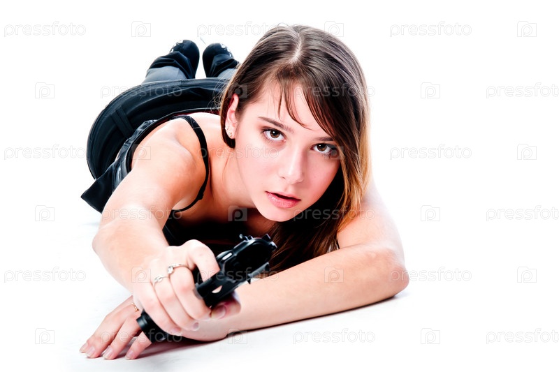 Молодая красивая женщина с пистолетом