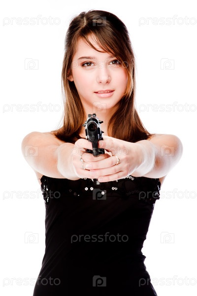 Молодая красивая женщина с пистолетом