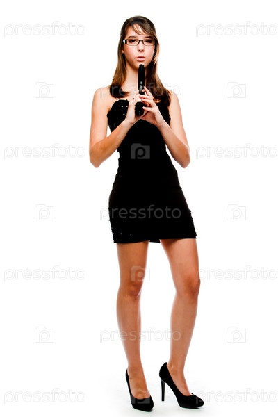 Молодая красивая женщина с пистолетом