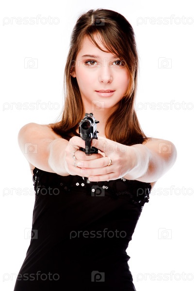 Молодая красивая женщина с пистолетом