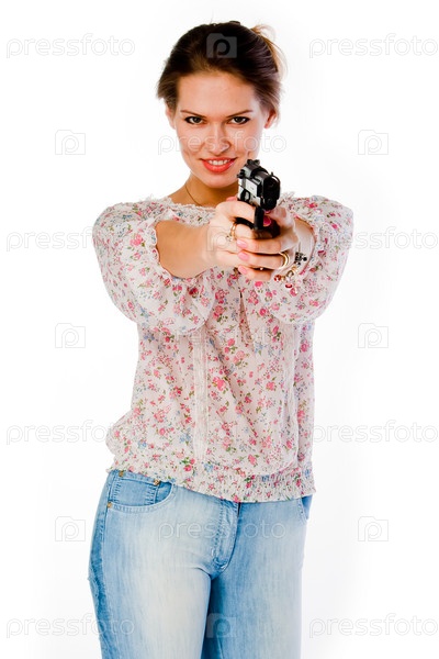 Молодая красивая женщина с пистолетом