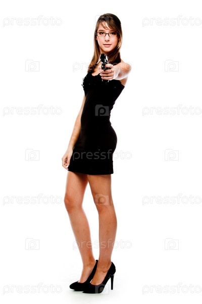 Молодая красивая женщина с пистолетом