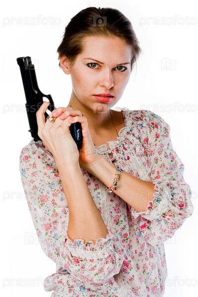Молодая красивая женщина с пистолетом