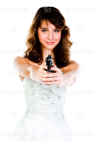 Молодая красивая женщина с пистолетом