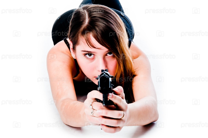 Молодая красивая женщина с пистолетом