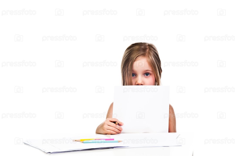 Красивая девочка с белой планшетной доской