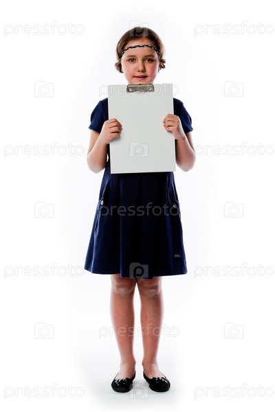 Красивая девочка с белой планшетной доской