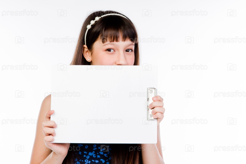Красивая девочка с белой планшетной доской