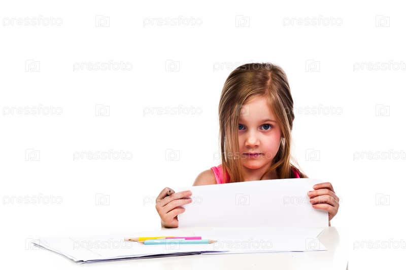 Красивая девочка с белой планшетной доской