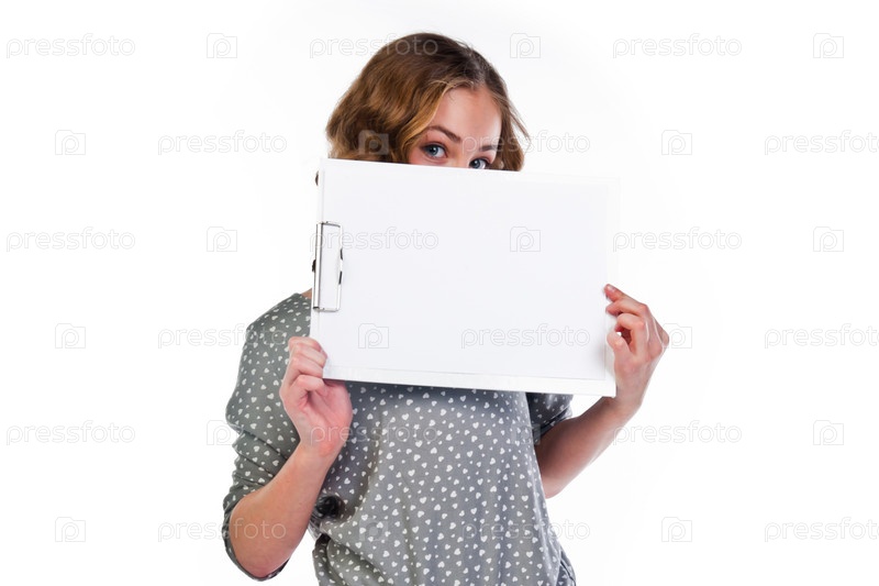 Красивая девочка с белой планшетной доской