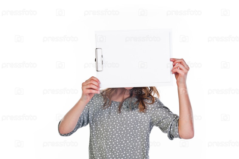 Красивая девочка с белой планшетной доской