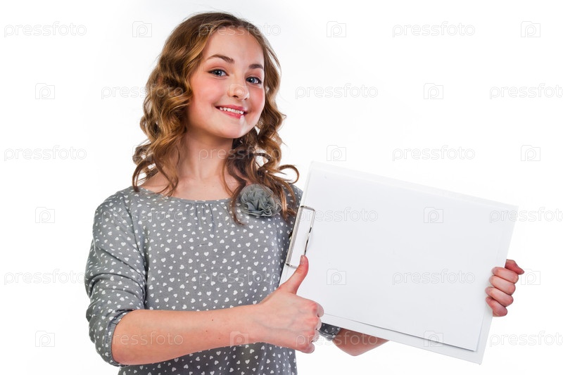 Красивая девочка с белой планшетной доской