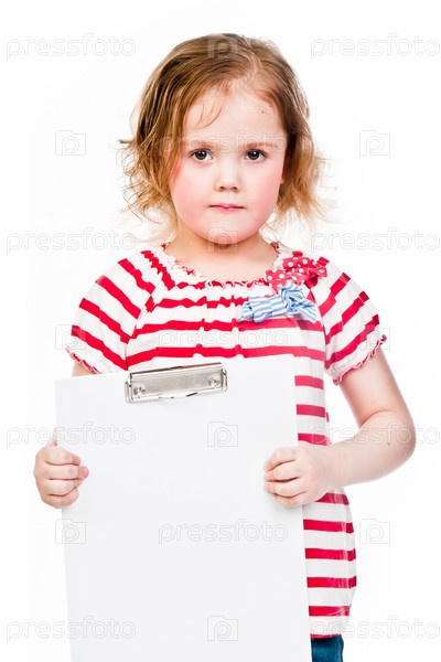 Красивая девочка с белой планшетной доской