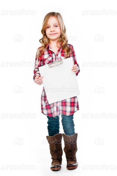 Красивая девочка с белой планшетной доской