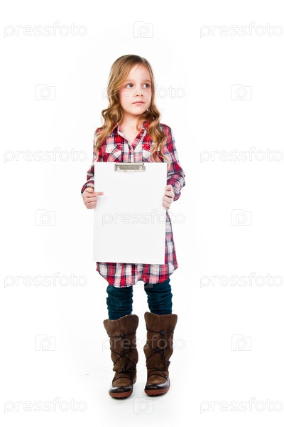 Красивая девочка с белой планшетной доской