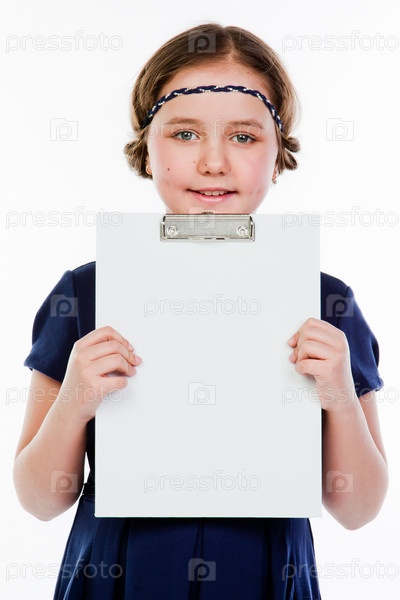 Красивая девочка с белой планшетной доской