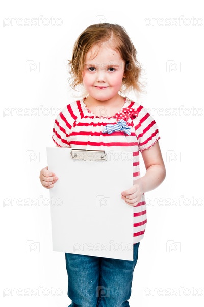 Красивая девочка с белой планшетной доской