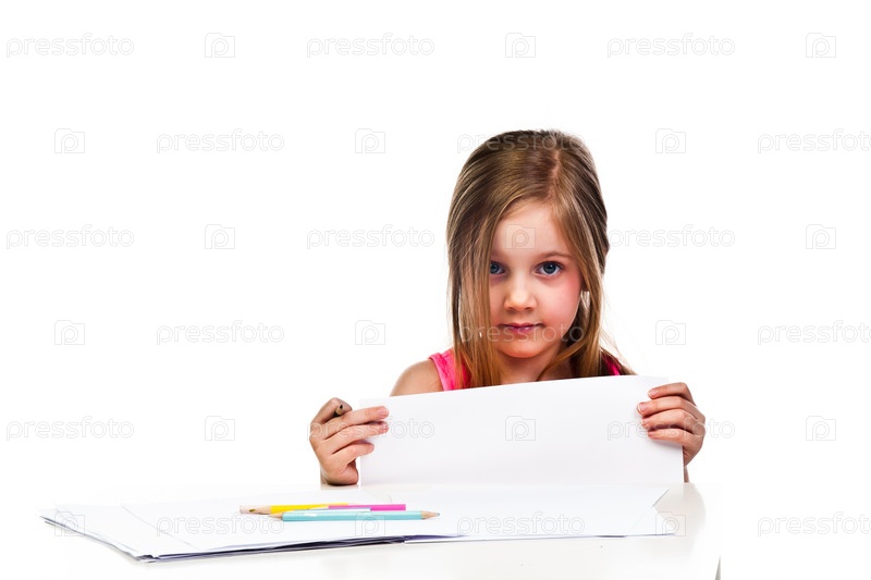 Красивая девочка с белой планшетной доской