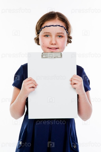 Красивая девочка с белой планшетной доской