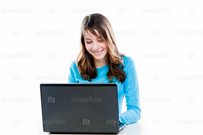 Красивая девочка с ноутбуком