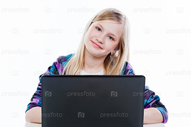 Красивая девочка с ноутбуком