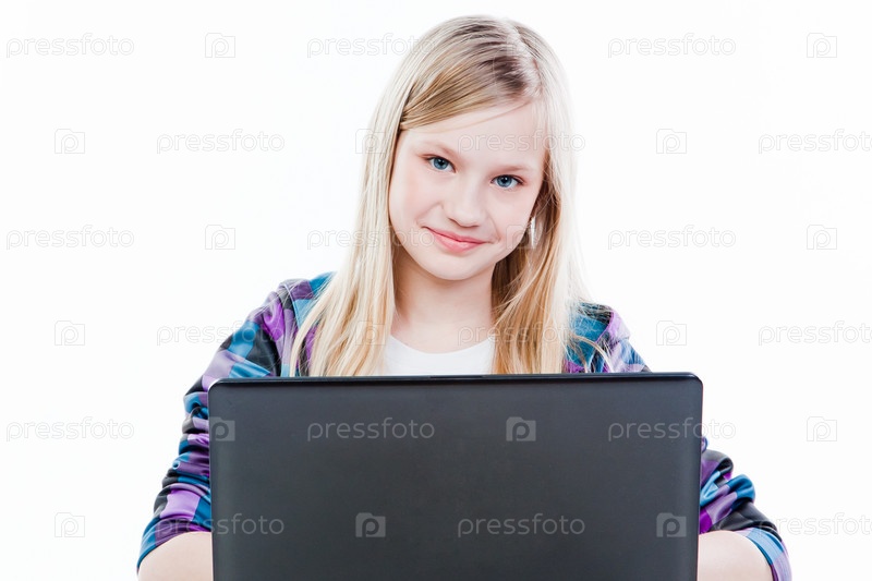 Красивая девочка с ноутбуком