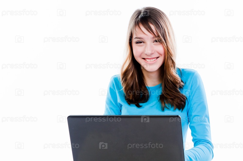 Красивая девочка с ноутбуком