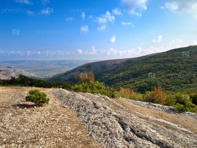 Вид на долину с каменистого холма