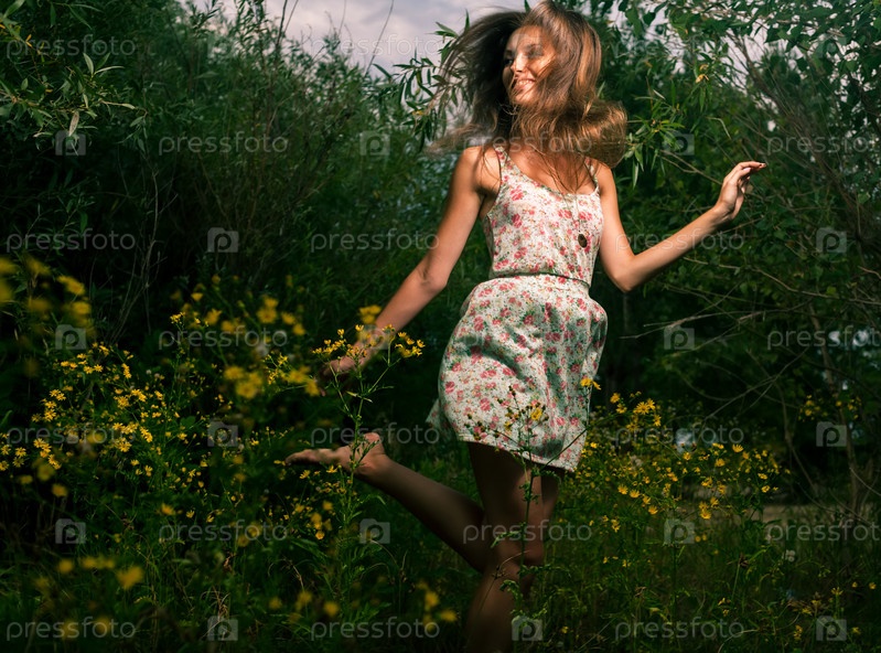 Счастливая девушка танцует