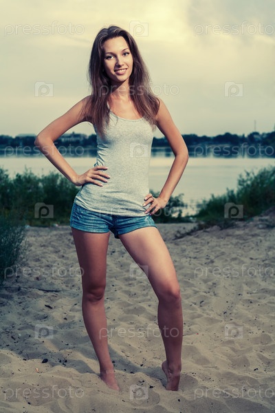 Девушка стоит возле реки