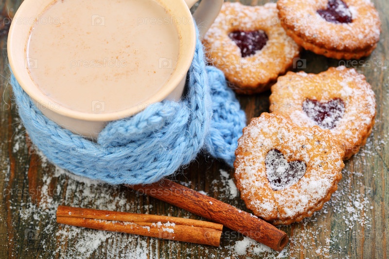 Горячее какао и печенье в форме сердца