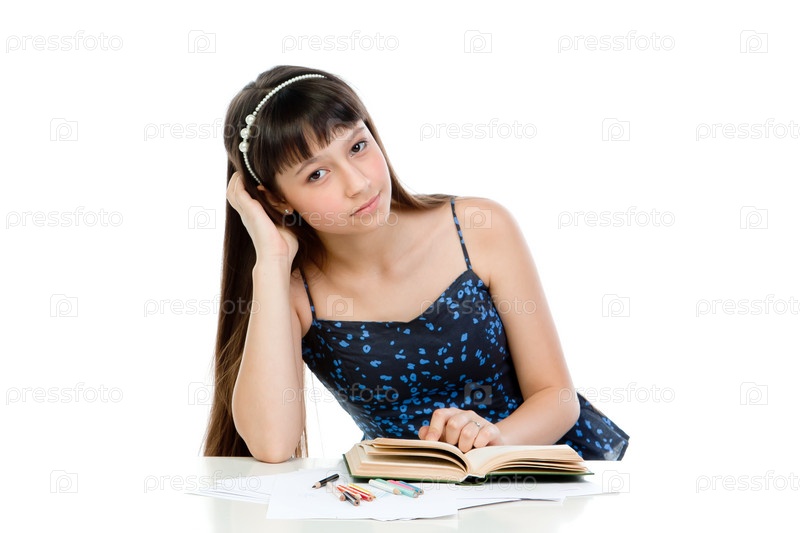 Красивая девочка читает книгу