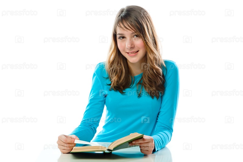Красивая девочка читает книгу