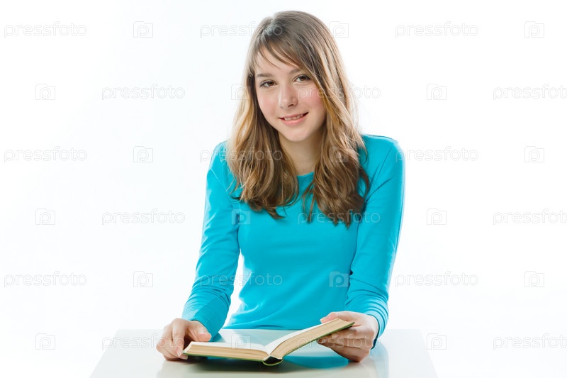 Красивая девочка читает книгу