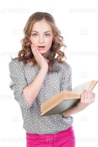 Красивая девочка читает книгу