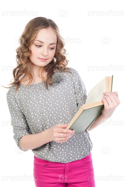 Красивая девочка читает книгу