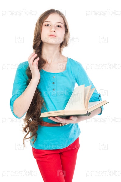 Красивая девочка читает книгу