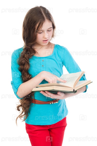 Красивая девочка читает книгу
