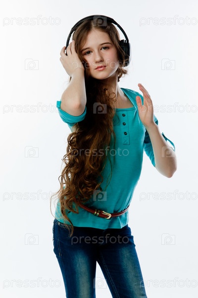 Красивая девочка слушает музыку в наушниках