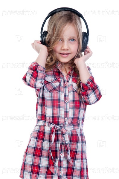 Красивая девочка слушает музыку в наушниках