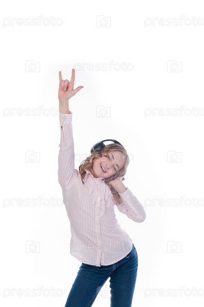 Красивая девочка слушает музыку в наушниках