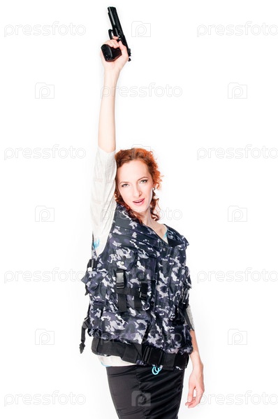 Молодая и красивая женщина с пистолетом